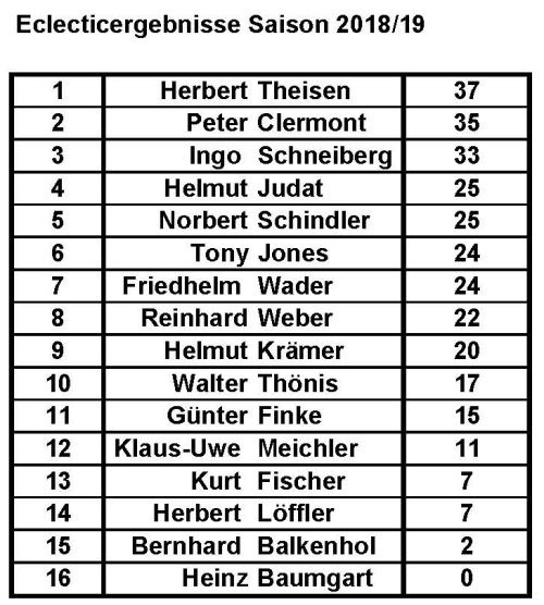 Eclectic-Ergebnisse Saisonendergebnisse 2018/19