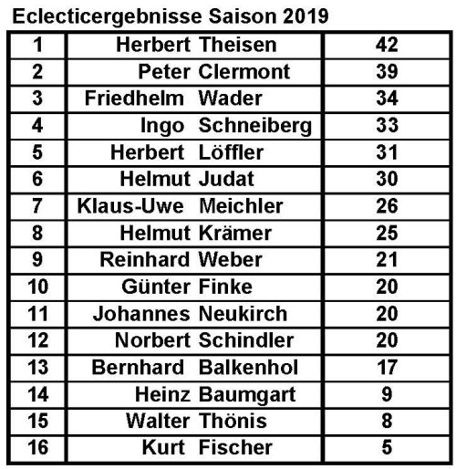 Eclectic-Ergebnisse Saisonendergebnisse 2019