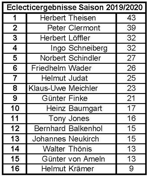 Eclectic-Ergebnisse Saisonendergebnisse 2019/20