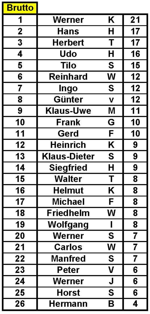 Brutto - Einzelergebnisse KölnGolf Worringen