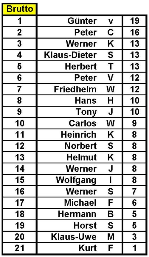 Brutto - Einzelergebnisse Nieper Kuhlen