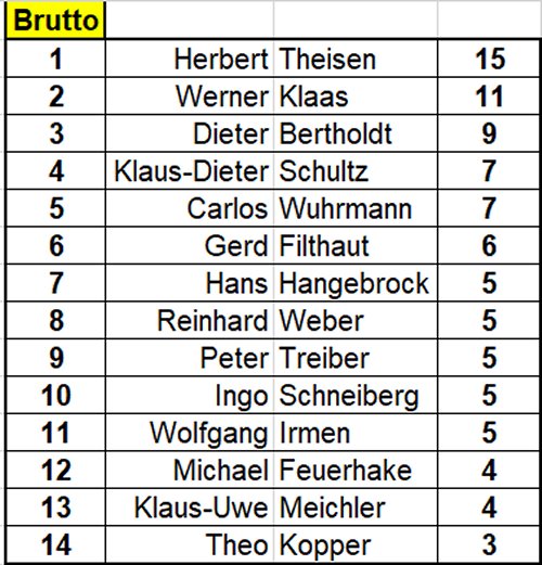 Brutto - Einzelergebnisse Dreibäumen
