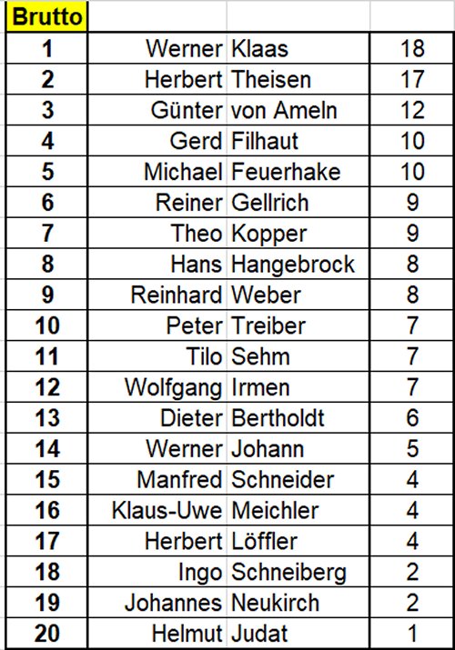 Brutto - Einzelergebnisse Elmpter Wald