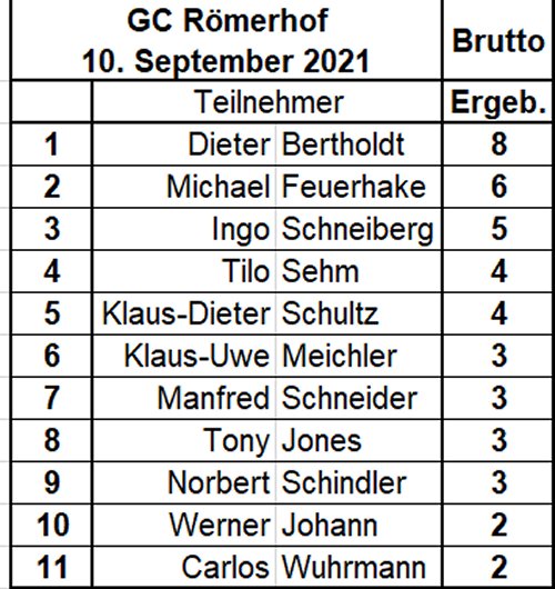 Brutto - Einzelergebnisse GC Römerhof