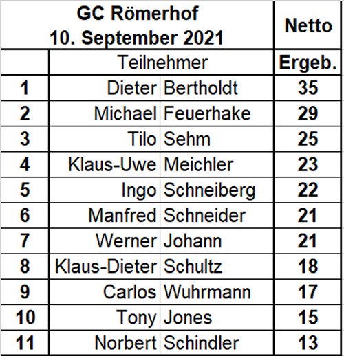 Netto - Einzelergebnisse GC Römerhof