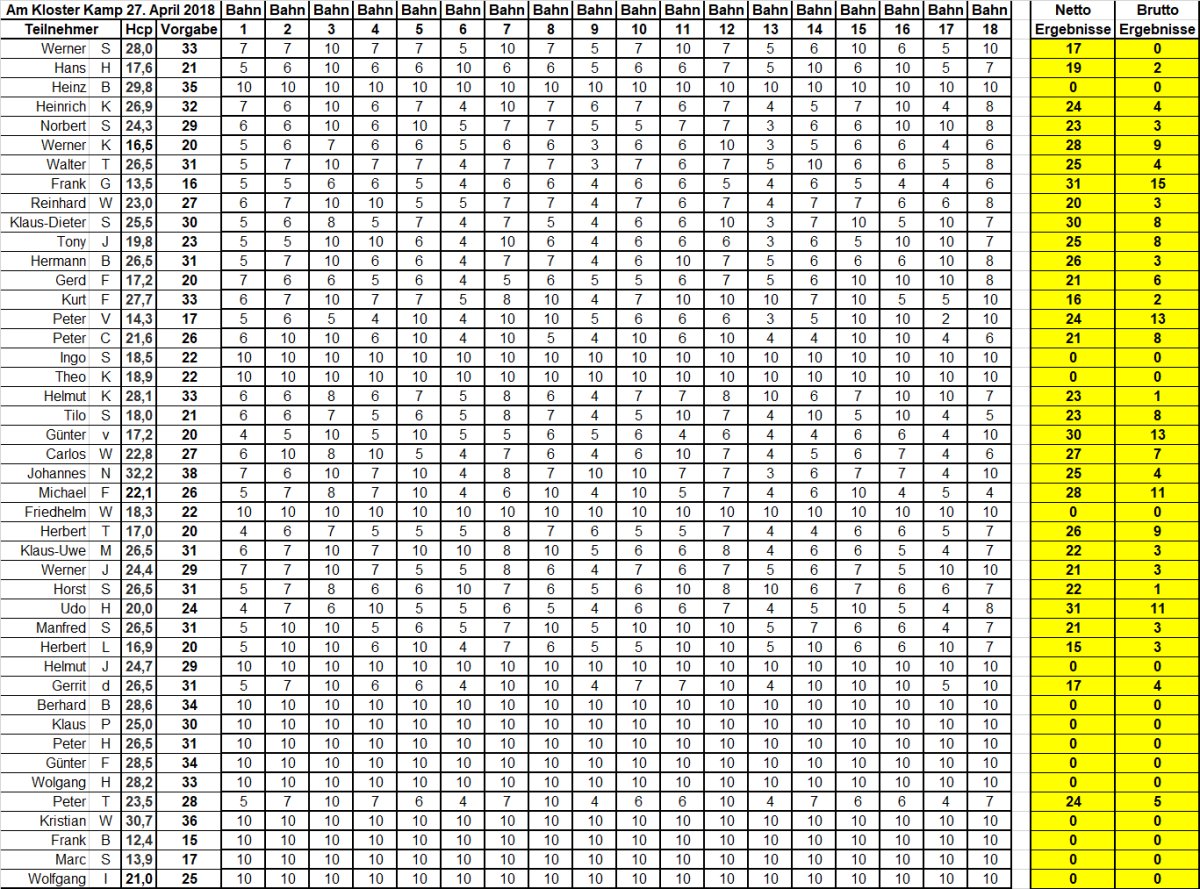 Tagesergebnisse 2018