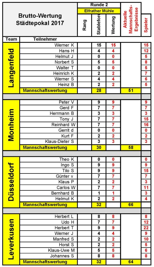 Brutto - Mannschaftsergebnis Elfrather Mühle