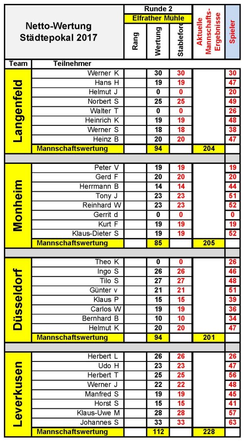 Netto - Mannschaftsergebnis Elfrather Mühle