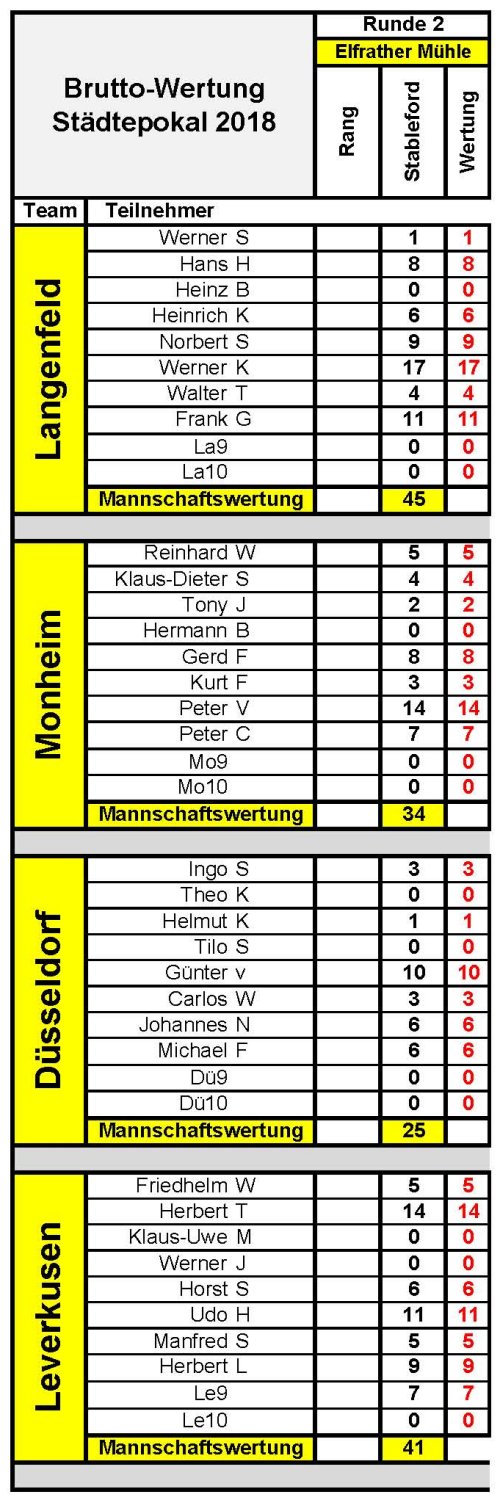Brutto - Mannschaftsergebnis Elfrather Mühle