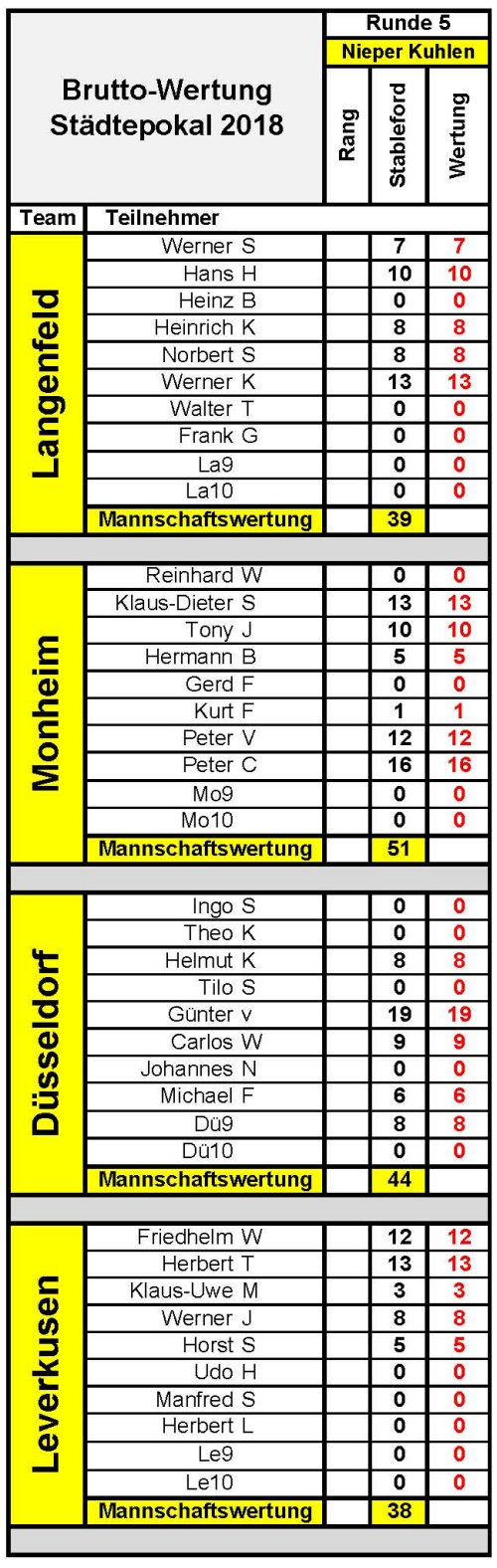 Brutto - Mannschaftsergebnis Nieper Kuhlen