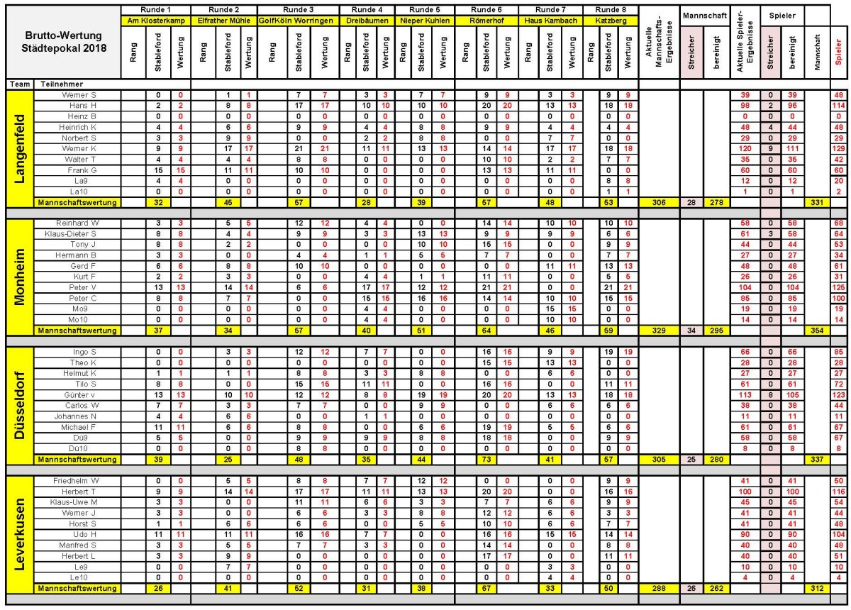 Brutto-Mannschaftsergebnisse 2018