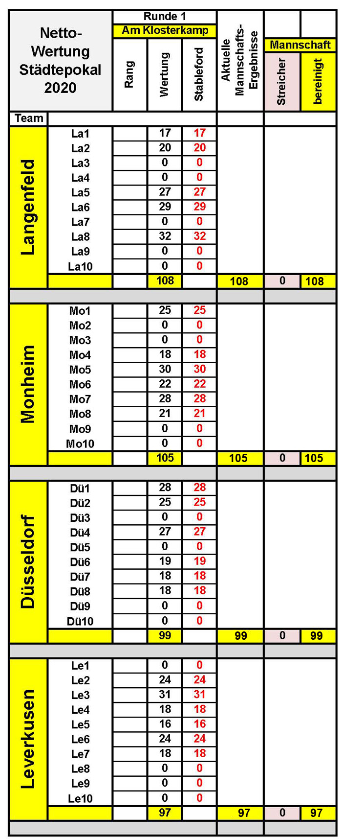 Laufende Netto-Mannschaftsergebnisse 2020