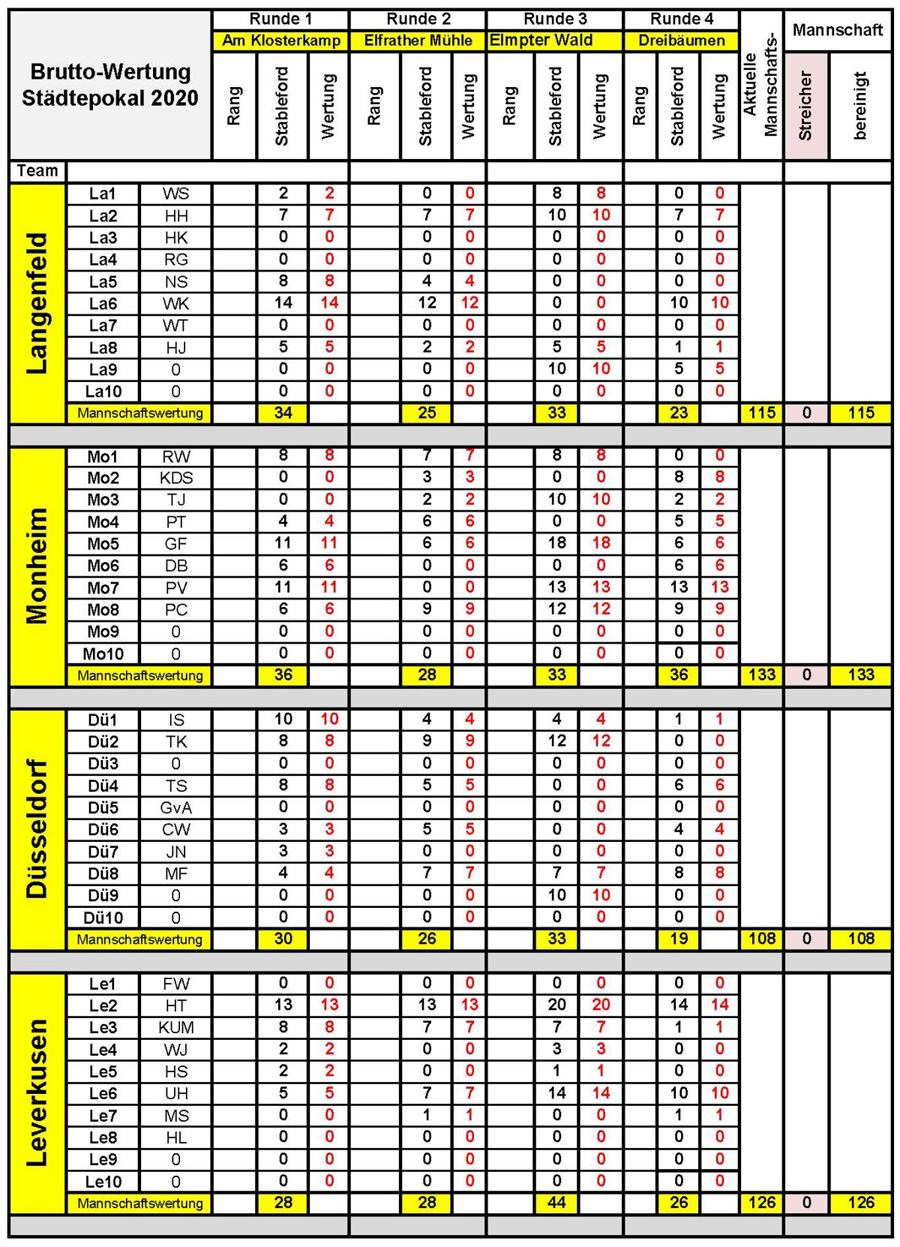 Laufende Brutto-Mannschaftsergebnisse 2020