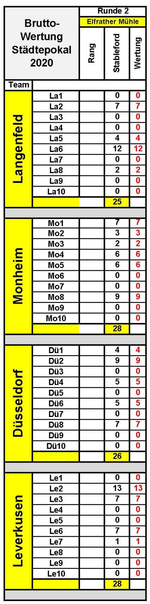 Brutto - Mannschaftsergebnis Elfrather Mühle