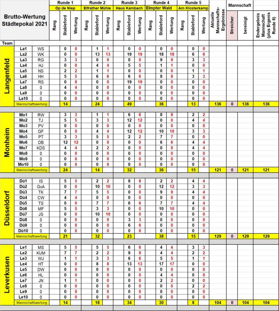 Brutto - Mannschaftsergebnis Am Kloster Kamp