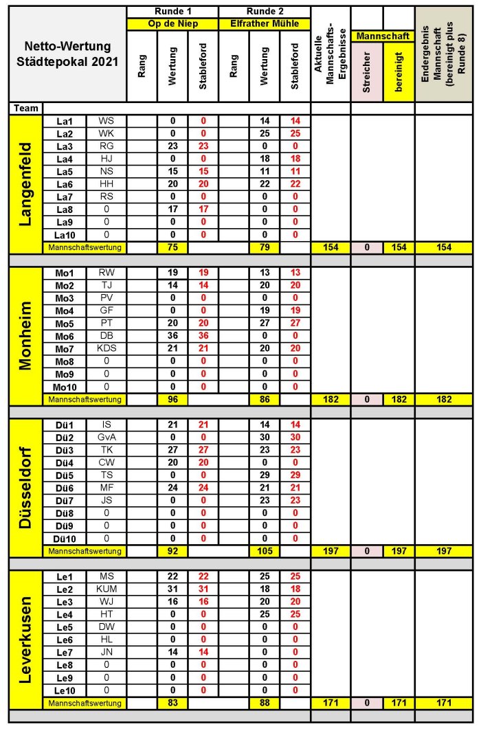Netto - Mannschaftsergebnis Elfrather Mühle