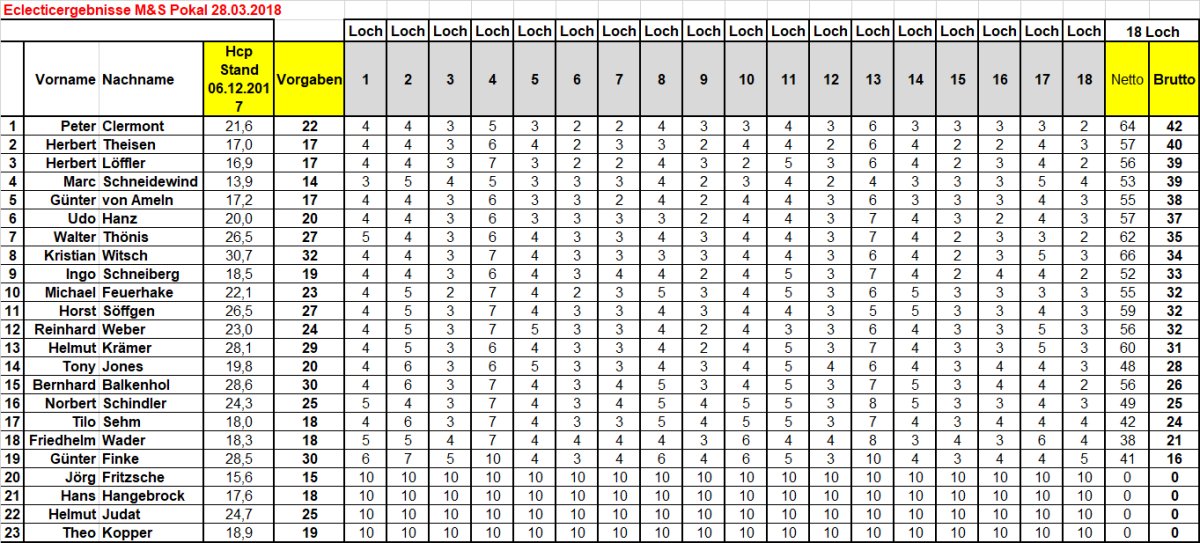 Eclectic-Endergebnisse M & S Pokal 2017/18